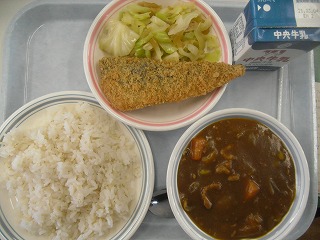 麦ごはん 牛乳 カレーライス 白身魚フライ 福神和え