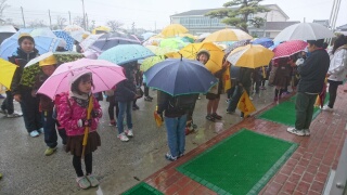 あいにくの雨でしたが、新団長は、付き添い下校で担当の先生と一緒に下校し、緊張の初団長を経験しました。