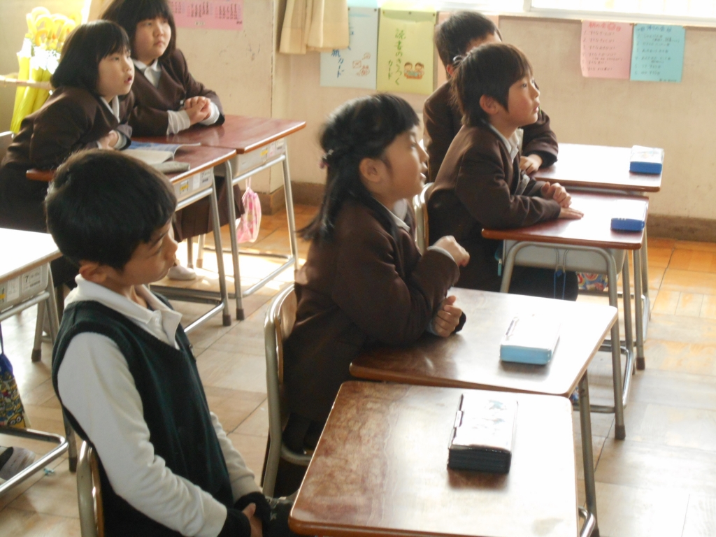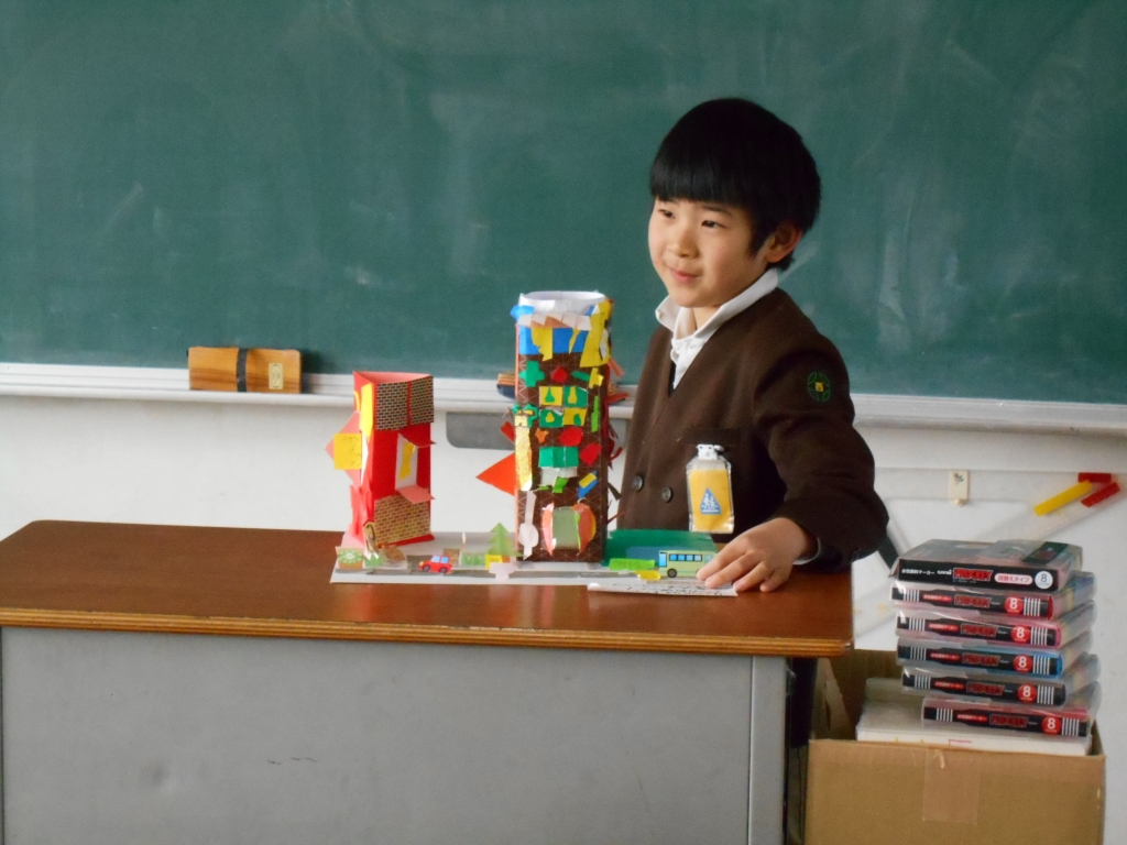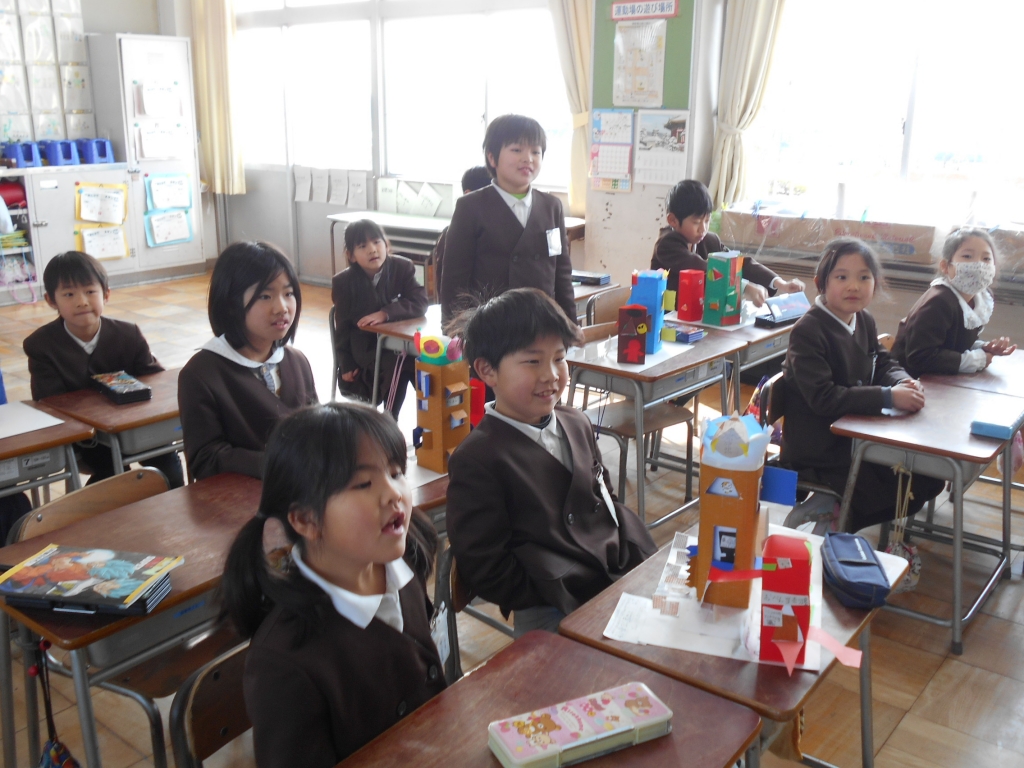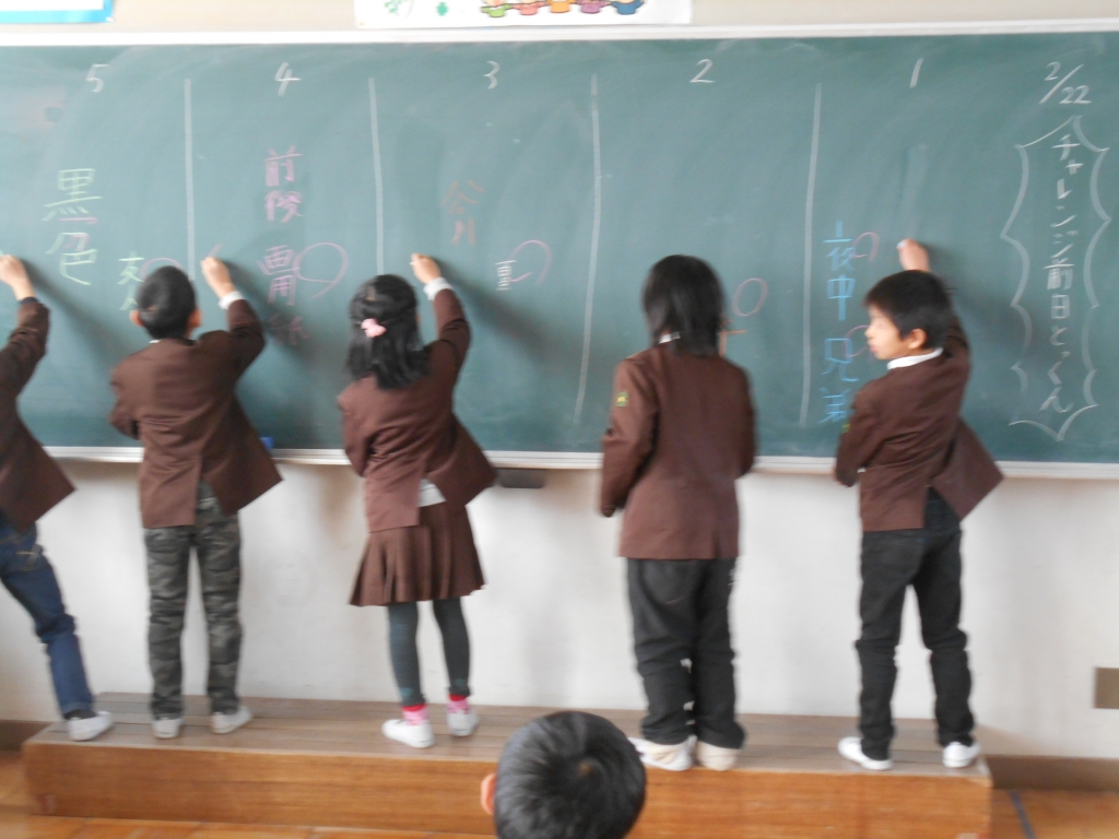 2年2組では、明日の漢字チャレンジテストのために、特訓をしました。班対抗でゲームをしながら覚えました。1組は、図工の作品の発表会をしました。