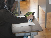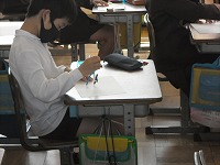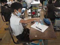 3年生が算数でコンパスを使って円を描く練習をしていました。