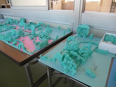 が出来上がって廊下に展示してありました。とても細かく作ってあり、工夫して合って、いろいろな子の作品がつながって大きな街になっているように見えました。