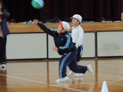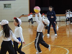 1年生 1,2組合同の体育でなわとびやドッジボールを元気よく行いました。