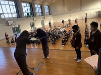 昨日はⅡ期の最終日。全校が集まっての集会がありました。寒さが厳しいこともあり、3年ぶりに体育館での集会ですが、冷えた体育館に入っても静かに後から来るクラスを待つなど立派な態度でどの学年も集会に臨むことができ、校長先生の話の中でも褒められました。話の後、3人の児童が表彰されました。