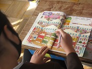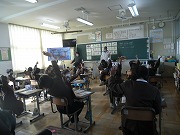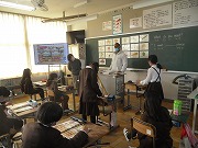 4年生が、英語でフルーツや野菜の絵を使って、英語のビンゴゲームをしていました。Nick先生が一つずつ英語の名前を言うたびに、みんなが一喜一憂していました。