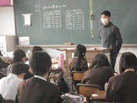 4年生が、算数で調査したことをまとめる方法について学習をしていました。1つの項目だけを見るのではなく、同時に2つの項目を表すための表について取り組んでいました。