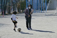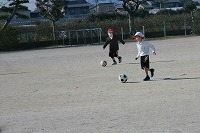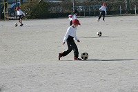 どうやったら上手にけりながらコントロールできるか・・・。まずはきちんとボールを止めることです。先生の笛に従ってどんどんけって進み、次の先生の笛でしっかり止めることを繰り返していました。