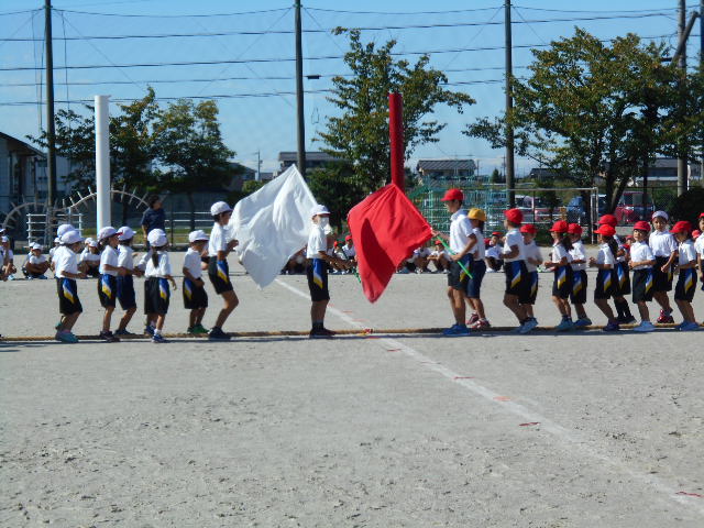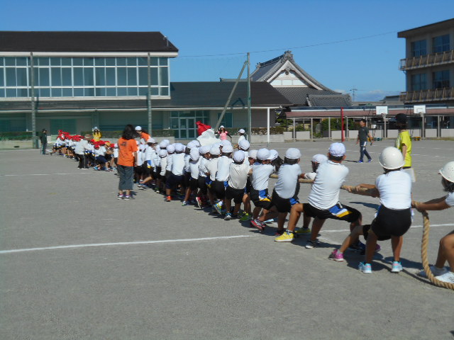 運動会の全校練習が、今日は運動場で行われました。今日は、綱引きの入場や退場の仕方を中心に練習しました。