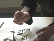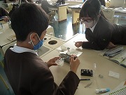 6年生が理科で上皿天秤を使っていました。1g以下の微妙な重さを薬さじですくって調整していました。