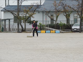 ハーフタイムの間に、各校の先生方が、運動場の水取りをしてくださいました。ありがとうございました。