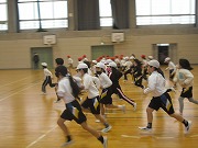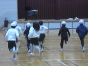 2年生が体育で「シャトルラン」に挑戦していました。20mの距離を、指示に合わせていったり来たりするのですが、だんだん指示の間隔が短くなっていきます。