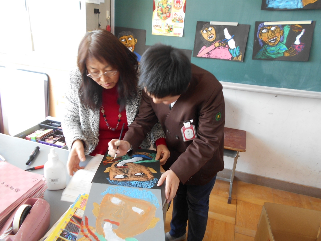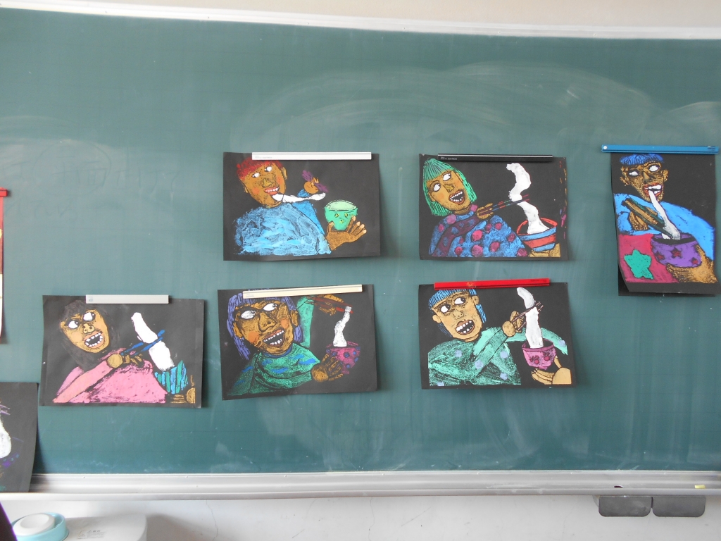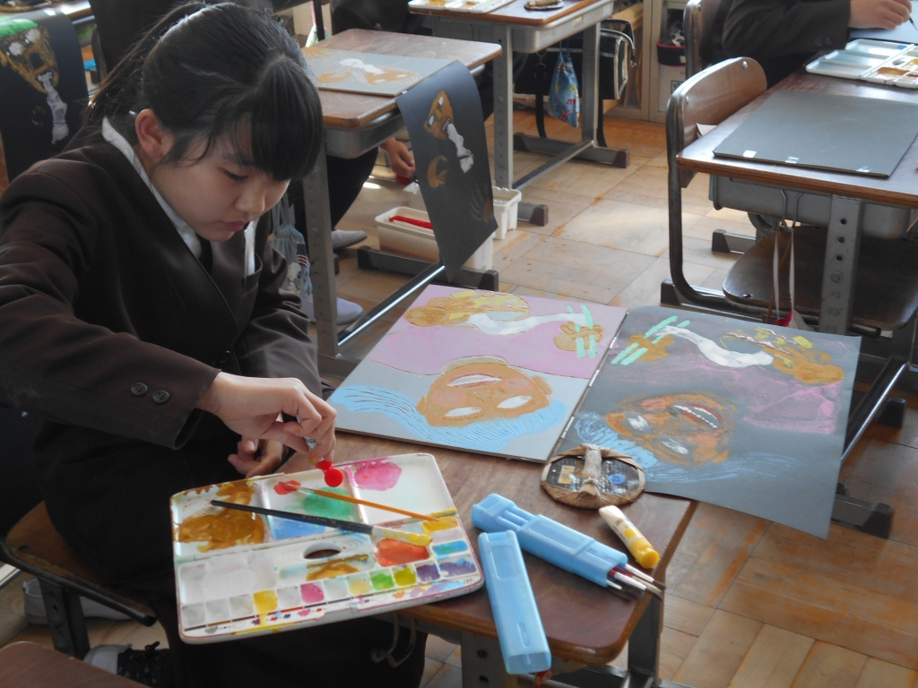 5年生は、一版多色刷りの版画が完成しました。ダイナミックな作品がたくさん仕上がりました。