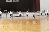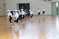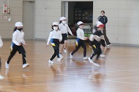 2年生は体育のウォームアップで、いろいろな体の動かし方に取り組みます。この日はスキップと後ろ走りをしていました。なかには、右だけスキップや左だけスキップという子もいます。