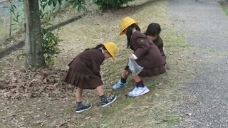 公園で遊んでいる時、ドングリが落ちているのを見つけて、たくさんの子が、ドングリを拾いました。