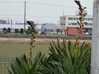 学校の東門付近にあるユッカ蘭の花がつぼみをつけています。本来、