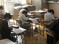 2年生が書き方の名文スキルに取り組んでいました。今日は萩原朔太郎の「竹」です。竹が一生懸命伸びていく様子が詩になっていて、イメージをつかむためにまずは交代で朗読し、そのあとで落ち着いて書き写していました。