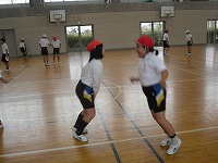 5年生が体育で、調整力を高める運動に取り組んでいました。人は、同時にいろいろなことをしようとすると混乱してしまうことがあります。5年生はその一つとして、遊びを取り入れながら練習していました。