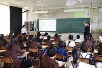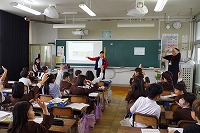 今日の外国語の学習では,挨拶の仕方や自己紹介の仕方について学習しました。自分の好きなことを紹介したり,相手の好きなことを尋ねたりする言い方を学びました。