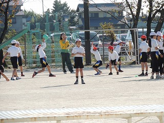 4年生はドッジボール。短時間でしたがみんな元気に取り組んでいました。
