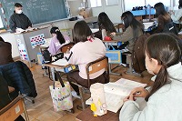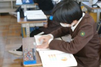 5年生が算数で、割合について復習していました。「くらべる数」と「もとになる数」、そして「割合」の三つの数の関係を、どんな計算をするとどんな数が導き出せるのか「く・も・わ」の図に表して、理解しやすくします。