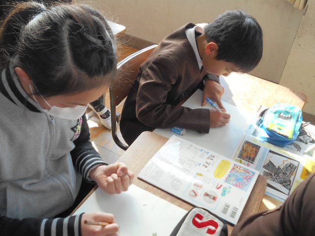 まず、下書きで、グー、チョキ、パーの手を描く練習をしました。