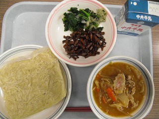 中華麺(ゴマ味噌ラーメン) 牛乳 カブと小松菜の青じそ和え 高野豆腐レンコンのかりんとう