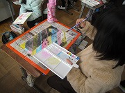 を刷った後、作品の裏に水彩絵の具で虹のような模様を塗っていました。完成した後にはどんな絵になるのか楽しみです。
