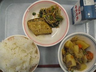 ご飯 牛乳 鯖のカレー焼き 肉じゃが おかか和え