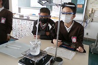 4年生が理科で、水を沸騰させる実験をしていました。先日の下準備のように器具を設置し、1分おきに温度の変化を記録します。水は100度で沸騰するといいますが、96度になってからなかなか温度が上がっていきませんでした。