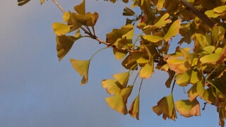 ヘチマの花の時に紹介した銀杏(イチョウ)のように、全く赤くならずに黄色に染まる種類の木は黄葉と書く方がふさわしく思えます。