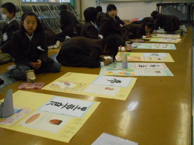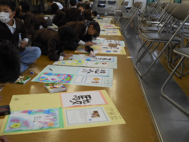 4年生は、24日に行う二分の一成人式の準備をしています。個人で10歳のメッセージの掲示物を作ったり、作品の展示をしたりしました。
