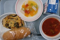 愛知の米粉パン 牛乳 茄子のとろ~りキッシュ トマトスープ 豆乳ゼリーポンチ