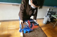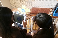 5年生が図工で取り組んだ糸のこぎりで切って作った木工作品について、作品紹介ビデオを作っていました。