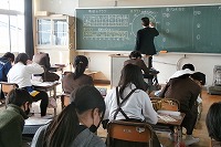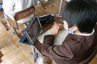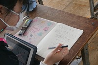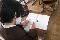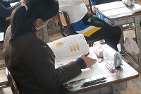 5年生が算数で割合について学習していました。割合を表すのに、帯グラフや円グラフなど様々な表し方を確認していました。