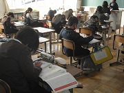 4年生が書写で硬筆に取り組んでいました。いつもの教科の時間にノートに書くのとは違って、きちんとマス目や行に合わせて、字の大きさや、位置を意識して書きます。もちろん止め、はね、はらいを丁寧に書いていきます。