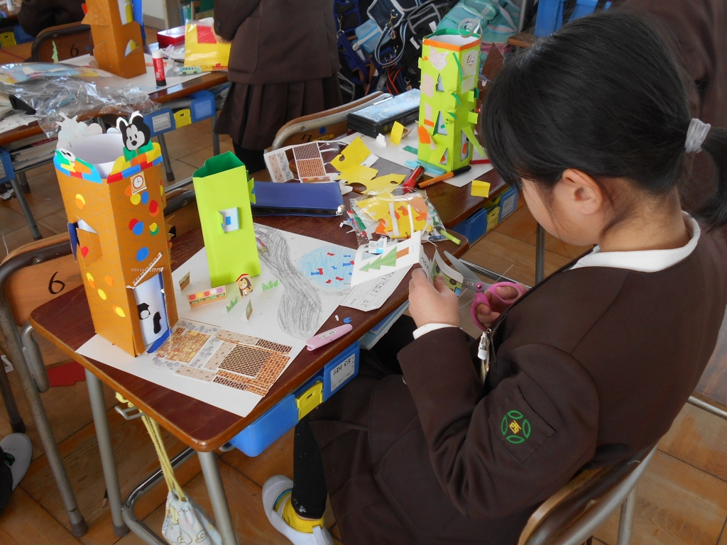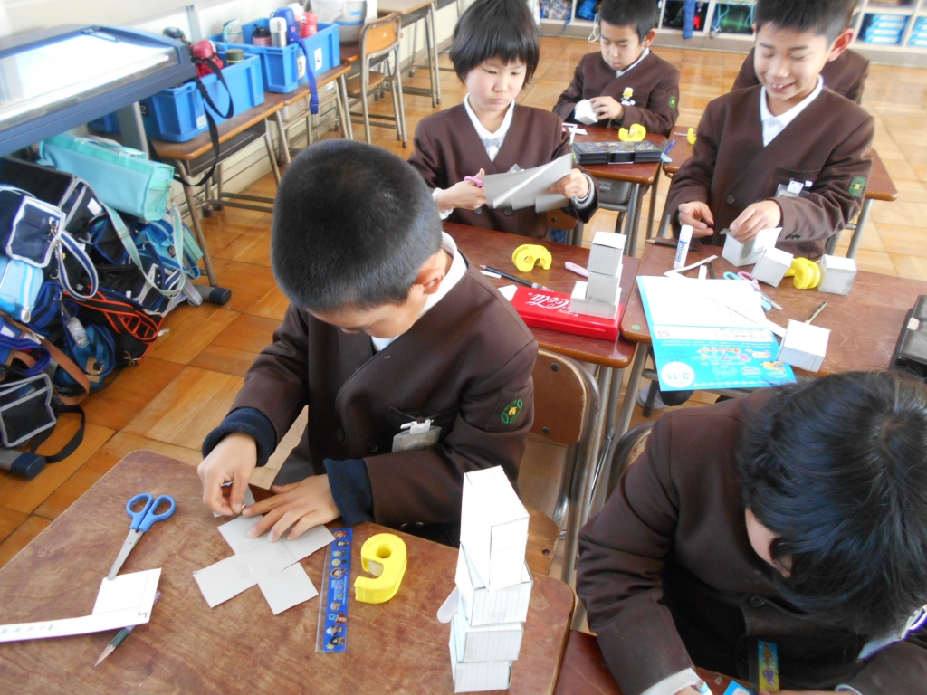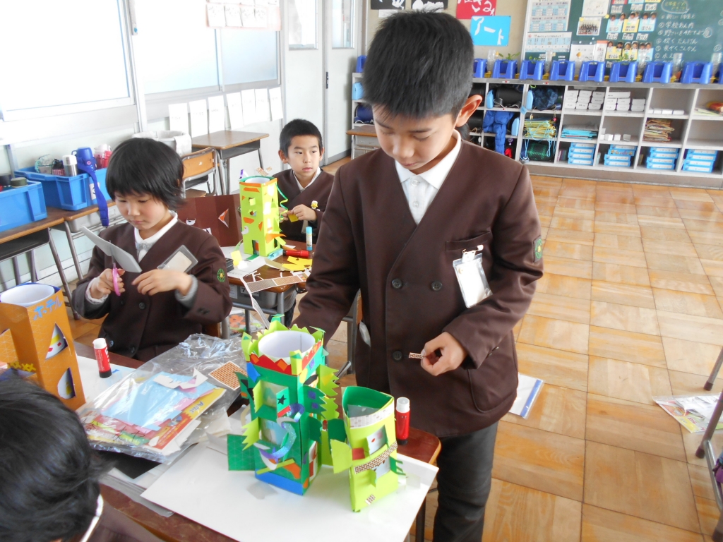 2年生は、図画工作では、「まどをひらいて」の作品が完成まじかになりました。算数では、はこづくりをして、立体の構成を学びました。