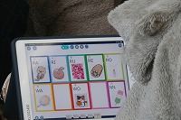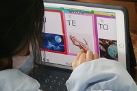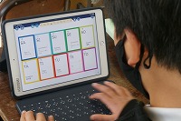 すべての文字について一つ一つ言葉を考え、写真やイラストを探し、かるたに入力していくのは大変ですが、自分の好きなスポーツで統一したり、食べ物で統一したりなど、一人ひとり工夫して作っていました。。