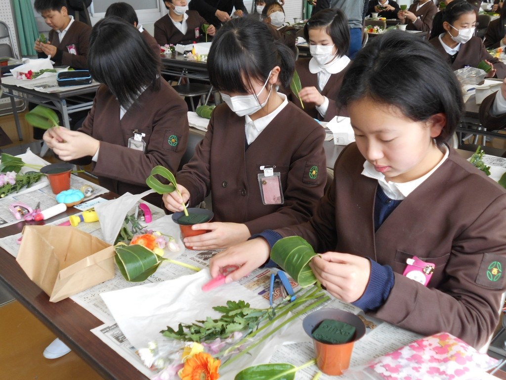 2月28日 フラワーアレンジメント (6年出前授業 花育教室)