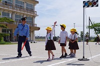 今日は全校で交通安全教室を行いました。1・2・6年生は,西川端の駐在さんにもお手伝いいただき,運動場で,信号機のある交差点での待ち方,道路の横断の仕方など,歩行訓練を行いました。3・4・5年生は,教室で,交通安全の映像を視聴しながら,交通ルールや安全について考える学習を行いました。今回学習したことをこれからの生活に生かしていけるよう,一人一人が気を付けていってほしいと思います。
