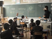 4年生が算数で、面積の学習をしていました。まわりの長さが同じ長方形でも、縦や横の長さが変わると、図形の面積が変わっていきます。
