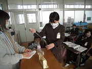 6年生が理科で水溶液の働きについて学習していました。小さな金属片などに酸性の水溶液を入れるとどうなるか実験します。
