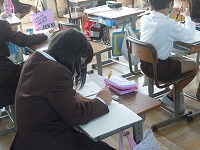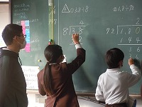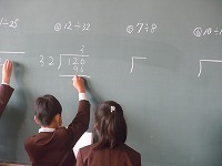 4年生が算数で、小数点以下まで割り進んでいく割り算の筆算に取り組んでいました。立ててかけて引いて下ろすという割り算の筆算の作業を何度も繰り返すのは大変ですが、どんな数でも同じように計算することができることが分かってくるでしょう。