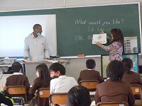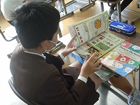 5年生は英語で、自分がほしいものを言うための、「I 'd like ~」という言い方を学習していました。もともとは「I would like ~」の短縮形ですが、発音すると、"d"の部分が聞き取りにくくて「I like」と間違いやすいのです。微妙な違いで、「私は~が好き」なのか「私は~がほしい」のかわからなくなってしまいます。みんな何度もALTのNick先生の発音に続いて練習していました。