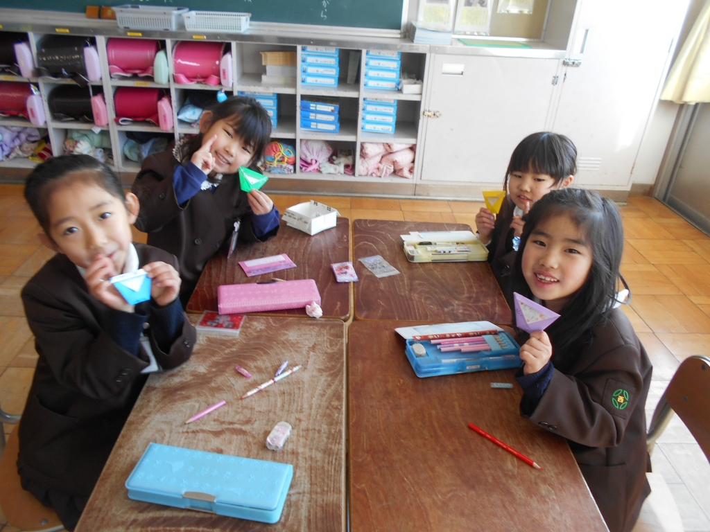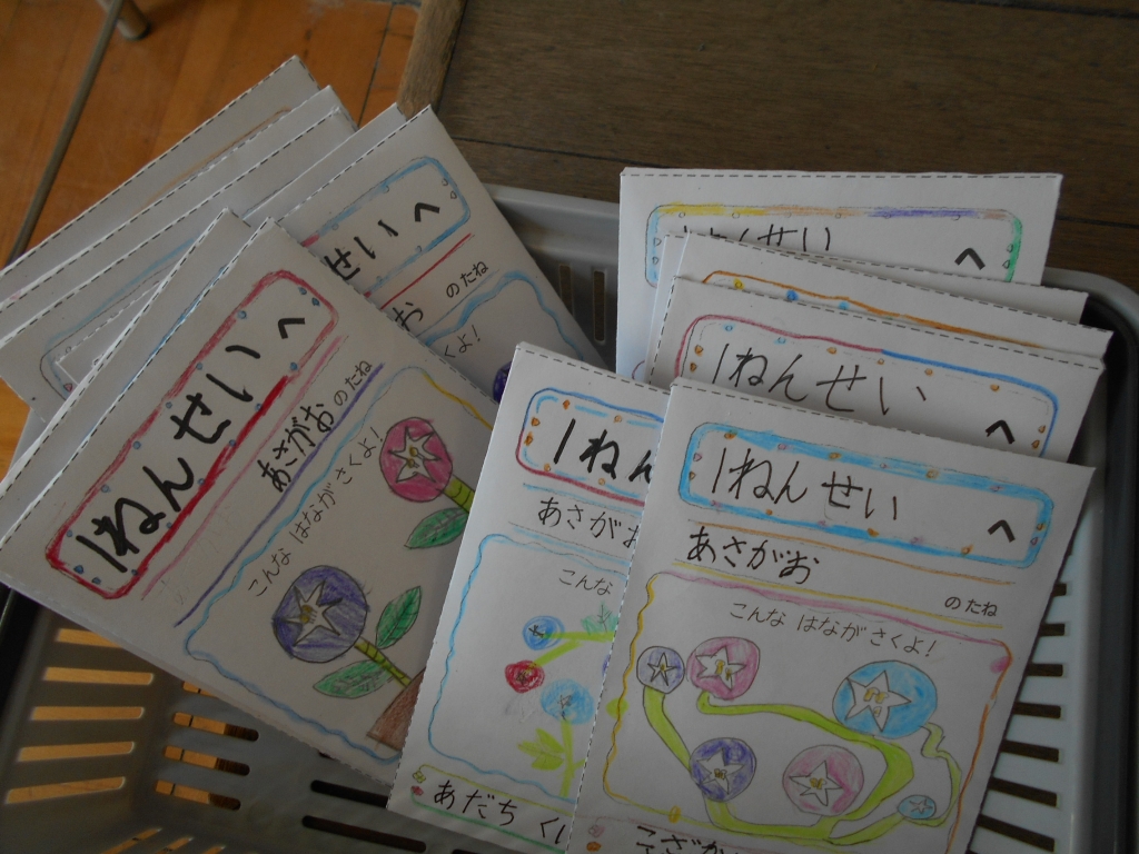 1年生は、朝顔の種を袋詰めしました。新1年生へのプレゼント用と自分用です。