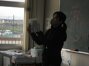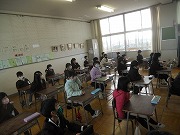 1年生は、先生から「とおるくん」について説明を聞きました。もともと1年生は通常の教室では人数が多く密になりやすいため、現在は大きめの教室で学習しています。そのうえで、感染拡大防止のために、この「とおるくん」によって、空気の流れを作っていることをわかりやすくお話ししていました。