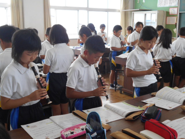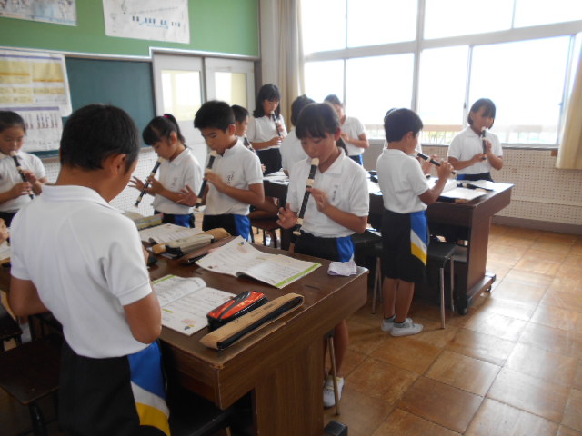 3年生は、書写で「小犬」を書きました。4年生は、音楽でリコーダーの演奏をしました。