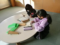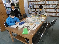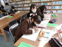 4年生が国語で、詩を調べていました。教科書で学習した詩をもとに、同じ作者のいろいろな詩や、同じテーマの詩、同じ動物が出てくる詩など、図書室のたくさんの本から探して、ノートに書きとっていました。