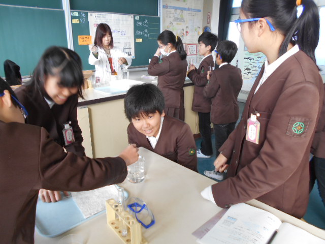 6年生は、水溶液で金属がどのように変化するか実験しました。みんな興味津々です。