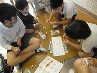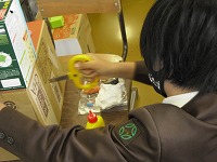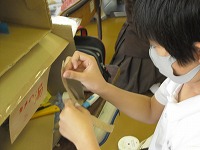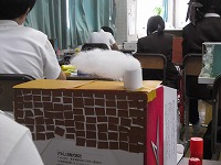 5年生が図工で取り組んでいる、ミニチュアのお店屋さんが進化しています。以前と同じデザインでも、材質を変えて作ったり、色を変えてみたり、同じように紙粘土を使って作る子たちが集まって協力し、効率よく作品作りを工夫しています。