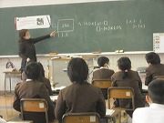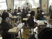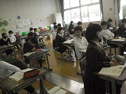 5年生は算数で、少数倍や分数倍した数のもとになる数の求め方について学習していました。きちんと理解していないと、文章題から式を作るときに全く反対に考えたり、数の順番を入れ替えて考えてしまったりと難しい内容です。すでに提示されている数をどこに書くとミスなく考えることができるか、図の書き方や式の立て方を考えていました。