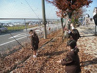 秋も深まり、多くの樹が落葉しています。たくさんの落ち葉があると投げ上げてひらひらと落ちる様子を見たくなるのはだれでも同じですね。休み時間には多くの子が遊んでいます。